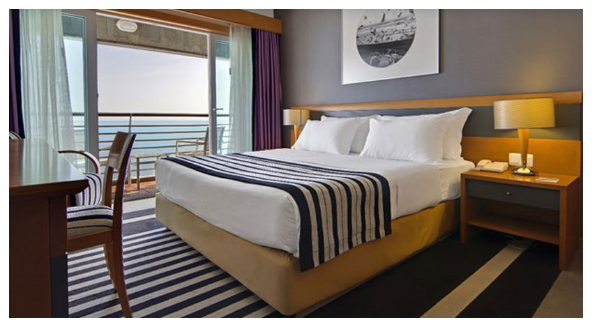 Die meisten Zimmer verfügen über einen Balkon und bieten Ihnen einen malerischen Strandblick. Die geräumigen Unterkünfte im SANA Sesimbra Hotel sind in sanften Farben gehalten und mit stilvollen, modernen Möbeln eingerichtet.
