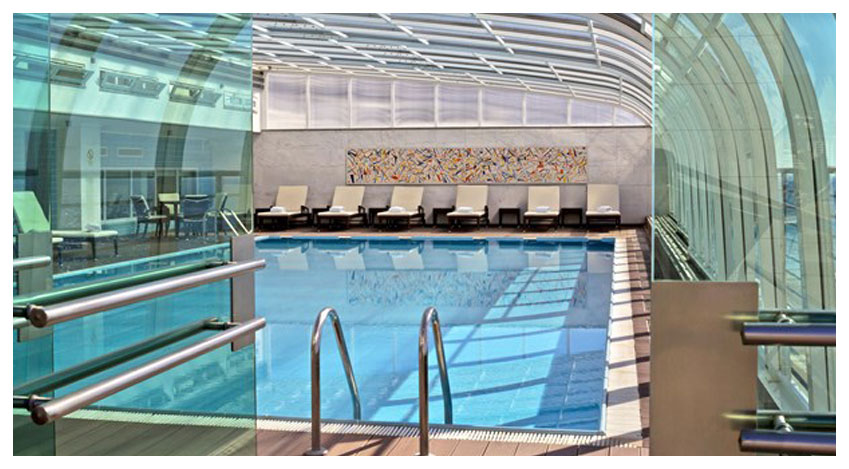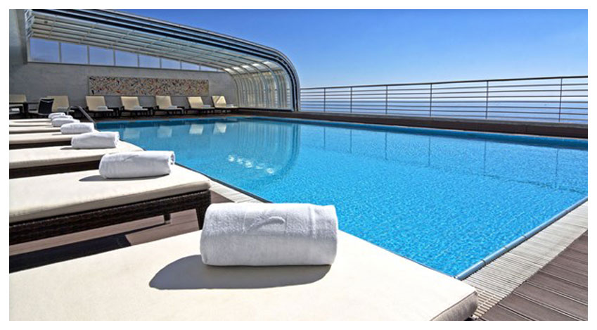 sich auf einen Innen- und einen Außenpool sowie einen Whirlpool auf dem Dach.